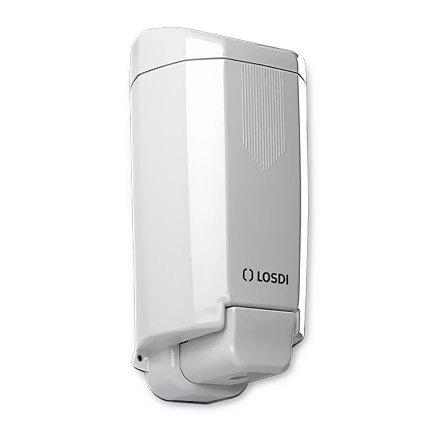 LOSDI folyékony szappan adagoló. 900 ml-es utántölthető tartállyal. Fehér ABS műanyag ház. Strapabíró kialakítás a komolyabb igénybevételhez. Kulccsal zárható.