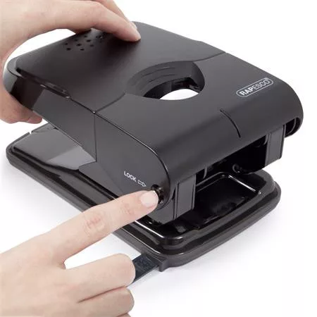 Lyukasztó, kétlyukú, 50 lap, könnyített lyukasztás, RAPESCO "X5", fekete