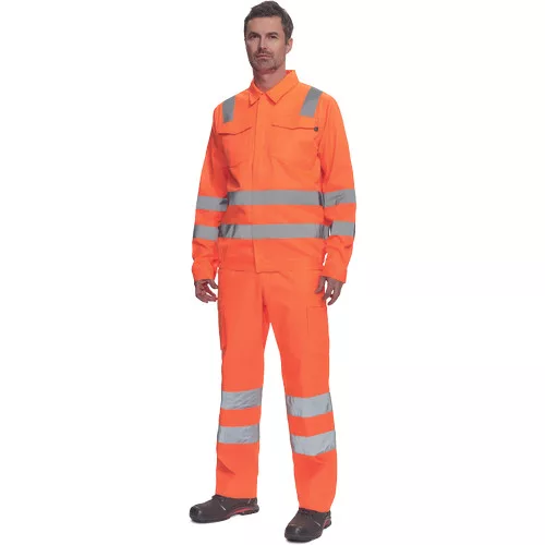 • férfi Hi-Vis kabát 5 cm széles fényvisszavető csíkokkal • cipzáras, tépőzáras hajtókával • 2 nagy hajtókás mellkasi zseb • rugalmas oldalsó betétek a kabát alján • tépőzáras mandzsetta