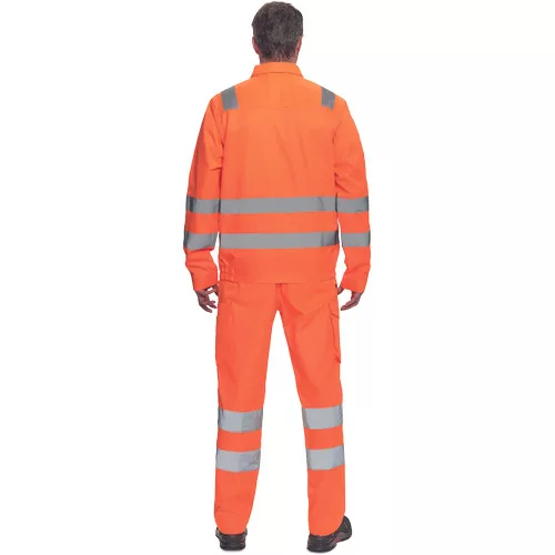 • férfi Hi-Vis kabát 5 cm széles fényvisszavető csíkokkal • cipzáras, tépőzáras hajtókával • 2 nagy hajtókás mellkasi zseb • rugalmas oldalsó betétek a kabát alján • tépőzáras mandzsetta