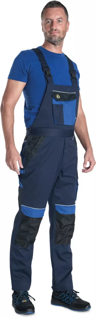 • férfi munkás mellesnadrág rugalmas derékpánttal • 2 oldalzseb • 1 combzseb • 1 mellzseb tépőzárral • 2 hátsó zseb tépőzárral