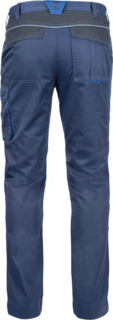 • férfi munkanadrág rugalmas derékpánttal • 2 oldalzseb • 1 bal combzseb • 2 hátsó zseb tépőzárral • térdrész erősítés opcionálisan behelyezhető térdpárnával • fényvisszavető részletek • állítható szárhossz