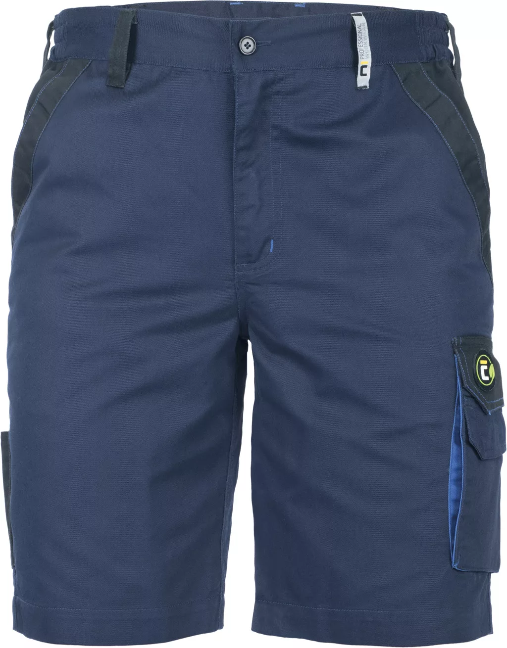 • férfi munkás rövidnadrág rugalmas derékpánttal • 2 oldalzseb • 2 combzseb • 2 hátsó zseb tépőzárral • fényvisszavető részletek