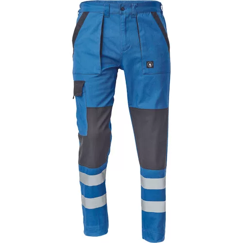 • férfi munkanadrág rugalmas derékkal • 2 első zseb • 1 oldalzseb • 2 hátsó zseb • megerősített térdrész • fényvisszavető csíkok a nadrág alján • a szárak hossza meghosszabbítható • anyag: 100% pamut, anyagvastagság: 260 g/m2