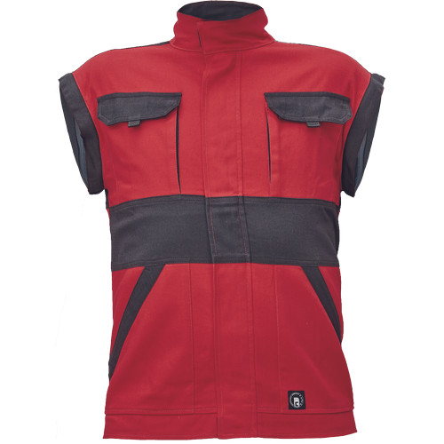 • férfi cipzáras munkakabát levehető ujjakkal • 2 oldalzseb, 2 mellzseb • megerősítés a váll- és könyökrészeken • rugalmas mandzsetta és derékpánt • anyag: 100% pamut, anyagvastagság: 260 g/m2