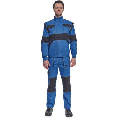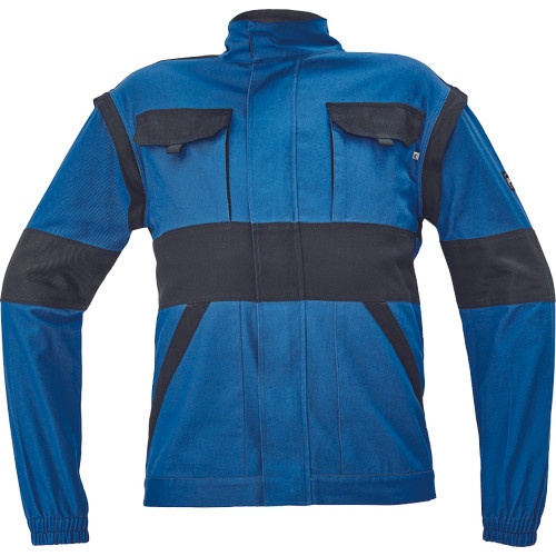• férfi cipzáras munkakabát levehető ujjakkal • 2 oldalzseb, 2 mellzseb • megerősítés a váll- és könyökrészeken • rugalmas mandzsetta és derékpánt • anyag: 100% pamut, anyagvastagság: 260 g/m2