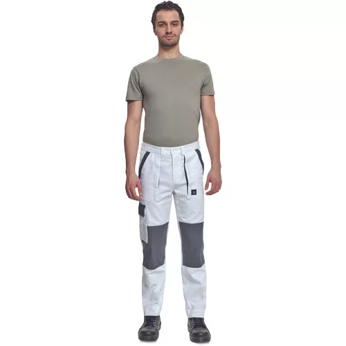 • férfi munkanadrág rugalmas derékkal • 2 első zseb, 1 oldalzseb, 2 hátsó zseb • megerősített térdrész • leengedhető szárak