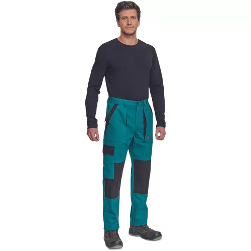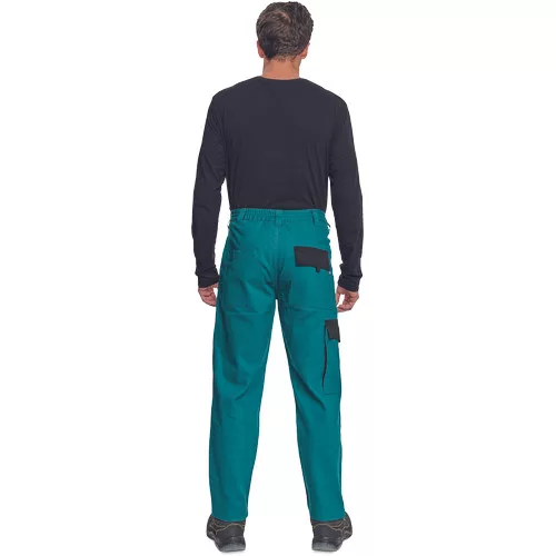 • férfi munkanadrág rugalmas derékkal • 2 első zseb, 1 oldalzseb, 2 hátsó zseb • megerősített térdrész • leengedhető szárak
