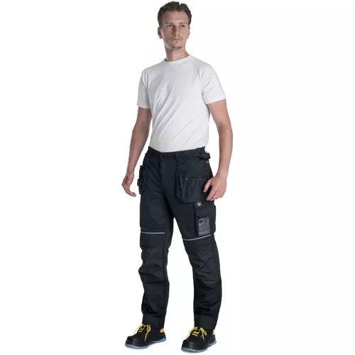 • men's working pants with an elastic waistband • 2 multifunctional flying pockets • Oxford 600D reinforcement at knee areas with optional knee pad insertions • adjustable leg length • reflective piping