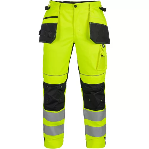 • men's HI-VIS working pants with an elastic waistband • 2 multifunctional flying pockets • 2 printed 7.5 cm wide reflective stripes on bottom legs • Oxford 600D reinforcement at knee areas with optional knee pad insertions • adjustable leg length