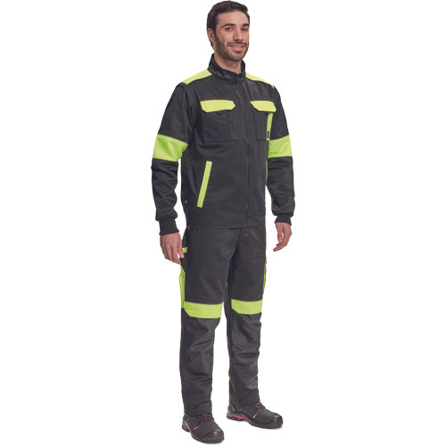 • férfi cipzáras munkakabát levehető ujjakkal • 2 oldalzseb • 2 mellzseb • Oxford 600D erősítés a váll-és könyökrészeken • rugalmas mandzsetta és derékszegély • fényvisszavető szegélyek