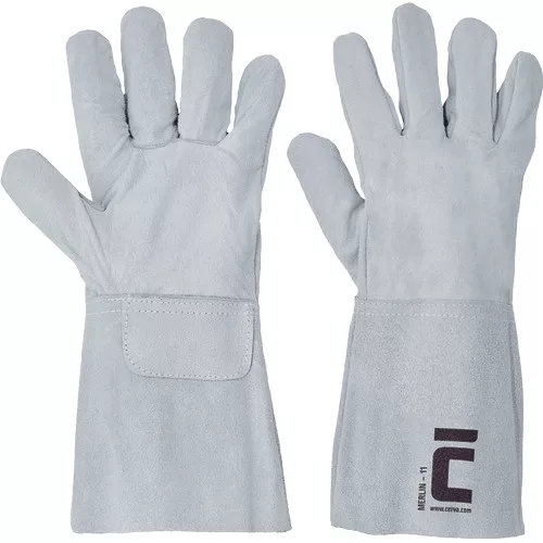 • bélés nélküli marha hasított bőr védőkesztyű 15 cm széles mandzsettával • tanúsítvány: hegesztés - B típus (W változat – szélesebb mandzsetta)