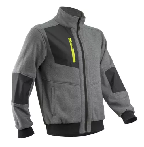 * BELSŐ: bolyhosított dzsörzé – 70% pamut+30% PES - 300 g/m2 vastag * PASSZÉ: bordázott és elasztikus 100% Poliészter* RIPSTOP BETÉT: (5 mm) PVC-vel borított 100% PES - 300 g/m2* Kopásálló Ripstop betétek a vállon* Álló gallér* Cipzáras záródás* 1 cipzáras softshell felső zseb* 2 függőleges oldalzseb* 2 belső zseb* Bordázott textil mandzsetta és aljrész* Kopásálló Ripstop megerősítés a könyökrészen
