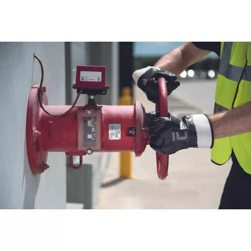 • fekete nitrilbe mártott varrott kesztyű jersey alapon • merev mandzsetta