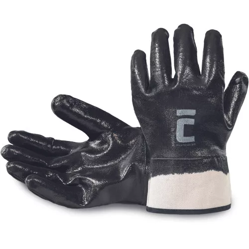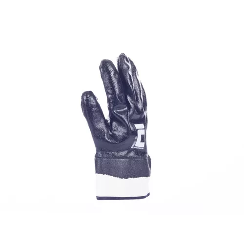 • fekete nitrilbe mártott varrott kesztyű jersey alapon • merev mandzsetta