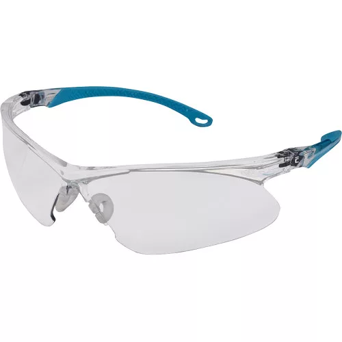 » könnyű, víztiszta védőszemüveg kivehető TPR betétekkel » polikarbonát lencsékkel (1FT EN 166) » tömege szivacsbetéttel 34 g , amely az arc és a szemüveg közötti fedéssel