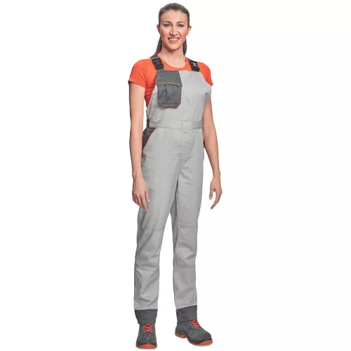 • női munkanadrág könnyű pamut-PES kevertszálas anyagból • nőies szabás • dekoratív paszpol kontrasztos színekkel • légáteresztő, köszönhetően hálós betéteknek • zsebfedővel fedett zsebek • a nadrágszárak hossza 5 cm-rel meghosszabbítható • 2 oldalsó zseb • 1 hátsó zseb • 1 mellkasi zseb, belül D-gyűrűvel •tartós anyagú • puhább, hajlékonyabb szövet