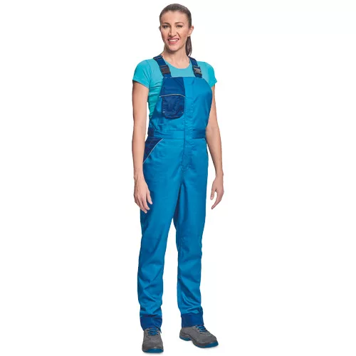 • női munkanadrág könnyű pamut-PES kevertszálas anyagból • nőies szabás • dekoratív paszpol kontrasztos színekkel • légáteresztő, köszönhetően hálós betéteknek • zsebfedővel fedett zsebek • a nadrágszárak hossza 5 cm-rel meghosszabbítható • 2 oldalsó zseb • 1 hátsó zseb • 1 mellkasi zseb, belül D-gyűrűvel •tartós anyagú • puhább, hajlékonyabb szövet
