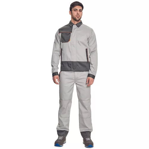 • férfi munka dzseki pamut-PES kevertszálas anyagból • dekoratív paszpol kontrasztos színekben • jó szellőzés a hálós betéteknek köszönhetően • fedett cipzár és zsebek • 2 oldalzseb • 1 mellzseb, benne rejtett D-gyűrűvel • ipari mosással tisztítható