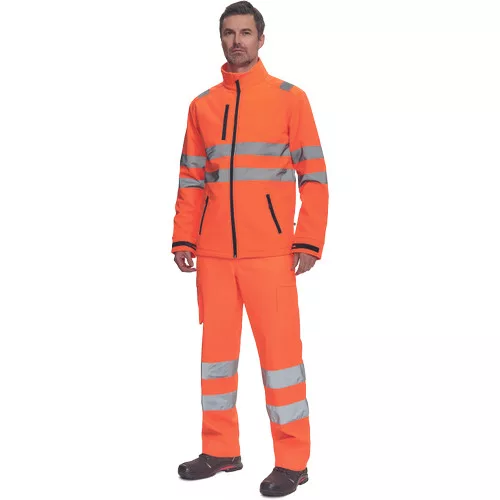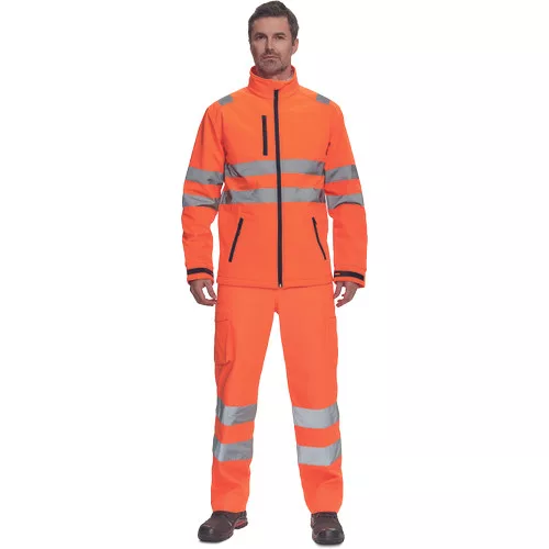 • Hi-Vis férfi softshell dzseki PU membránnal • 5 cm széles fényvisszavető csíkok az ujjakon és a test körül • cipzáras kialakítás • 1 mellzseb és 2 oldalzseb • tépőzárral szűkíthető mandzsetták • a dzseki alsó szegélye húzózsinórral szűkíthető