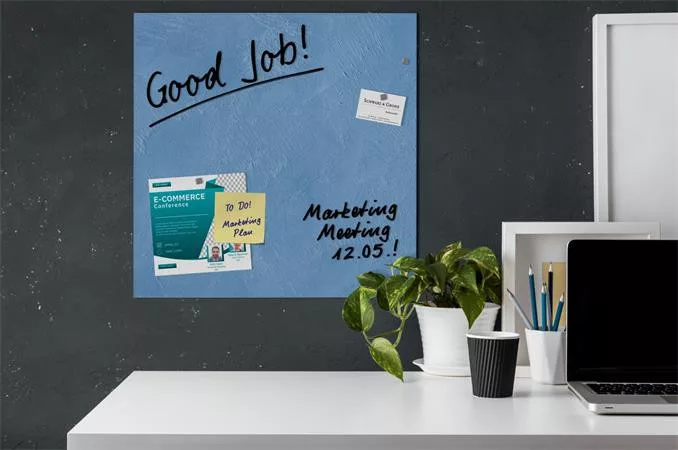 mágneses üvegfelület krétamarkerrel írható méret: 48 x 48 x 1,5 cm kék, strukturált minta, matt felület tartalmaz 3 db "SuperDym" erős kockamágnest és a felszereléshez szükséges anyagokat keret nélküli edzett üveg felület (EN 12150-1 biztonsági üvegből) exluzív megjelenés irodákba, konferenciatermekbe, éttermekbe.. keret nélküli felszerelés -lebegő hatás garancia: 25 év a felületre a táblához csak "SuperDym" mágnes használható Gyártó/első EU forgalmazó elérhetősége: SIGEL GmbH Baeumenheimer Strasse 10, 86690 Mertingen, Germany sandra.geist@sigel.de www.sigel-office.com