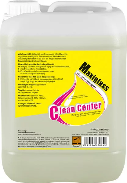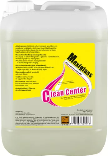 Makulátlan poharak 2 perc alatt. Lágy vízhez (max. 3 nK°): vízlágyítóval használt gépekhez kifejlesztve. Erős tisztító hatás: könnyedén távolítja el az italmaradványokat. Hatékony a rúzs, bor, kávé ellen. Felületbarát: tányérok, poharak -káli vagy ólomkristály-és műanyag eszközök gépi mosogatásához egyaránt megfelel. Foszfátmentes: a csatornákon keresztül, az állóvizekbe jutó foszfátterhelés eutrofizációt okoz, amely a halállomány és a helyi fauna pusztulásához vezet. A Maxiglass gépi pohármosogató szer foszfátmentes összetétele környezetbarát mosogatási technológiát tesz lehetővé. Súly: 6,04 kg. Adagolás: automata adagolás 1 liter vízhez 1-5 ml.