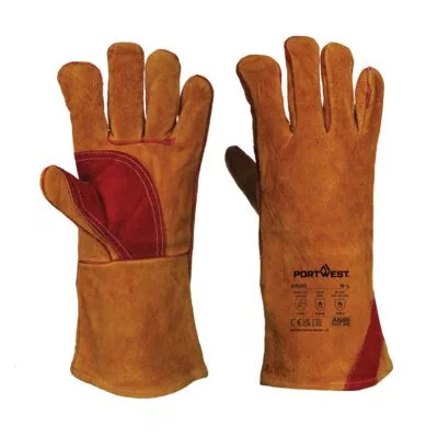 A megerősített prémium minőségű bőrből készült hegesztő kesztyű, megerősített tenyérrel és hüvelykujjal, amely további védelmet nyújt az A500 modellnél. Para-Aramid varratok az extra tartósság érdekében