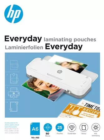 Meleglamináló fólia, 80 mikron, A6, fényes, 25 db, HP "Everyday"