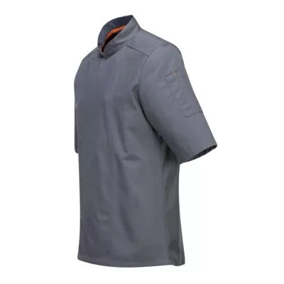 MeshAir panelekkel ellátott C738 ideális megoldás a forró konyhai környezetre. Dupla gombolású rejtett rögzítéssel és tollzsebbel. Stílusos és praktikus séfkabát.
