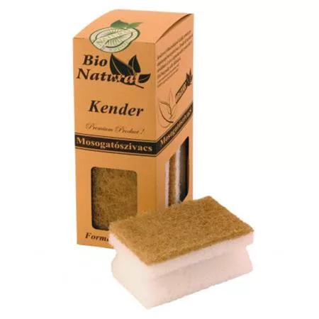 Természetes kenderrostból készített dörzsfelülettel és a hozzá illő kiváló minőségű, poliuretán szivaccsal kialakított mosogatószivacs.