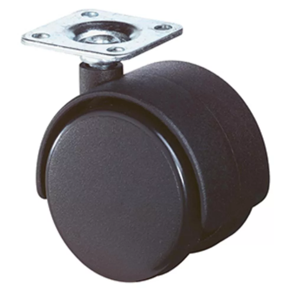 Műanyag dupla görgő, fekete, 40 mm átmérőjű, 30 kg teherbírású, csavarozható talppal, puha padlókhoz, 8 darabos csomag