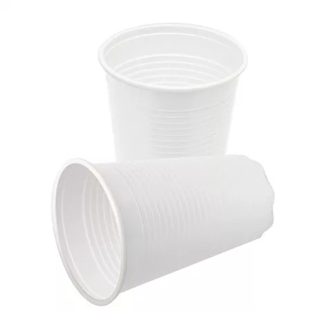 Egyszer használatos fehér műanyag pohár.