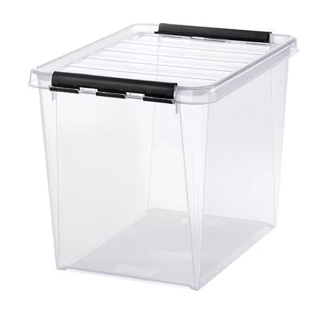 Műanyag tárolódoboz, 25 liter, fekete fogantyúkkal, SMARTSTORE "Classic 16", átlátszó