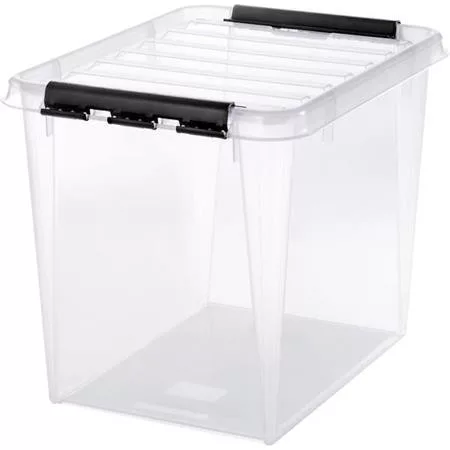 Műanyag tárolódoboz, 52 liter, fekete fogantyúkkal, SMARTSTORE "Classic 50", átlátszó