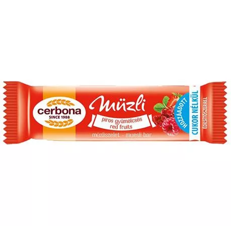 Müzliszelet, 20 g, CERBONA, piros gyümölcsös