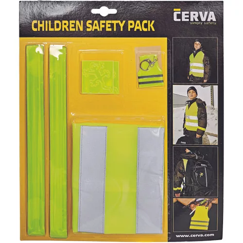 Biztonsági csomag: Jólláthatósági mellény, szalag, matrica, kulcstartó. Biztonsági ruházat, jólláthatósági tulajdonsággal. 3 év feletti gyermekek számára készült, (120 - 140 cm-es magasságra) utcai ruha felett viselhető. Bármilyen megvilágítási körülmények között nappal, vagy éjszaka, a biztonsági ruházat viselője jól észlelhető. EN 1150