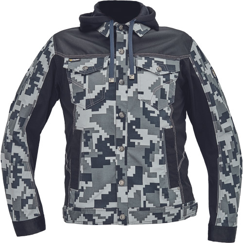 • férfi munkakabát férfi munkakabát innovatív, pamutgazdag, rugalmas TRIFIBETEX, illetve TRIFIBETEXPRO® anyagokból CORDURA® betétekkel, digitális terepmintával, fém gombok, állítható ujjvégek, 2 oldalsó zseb, 2 cipzáras mellkasi zseb, fényvisszavető csíkok