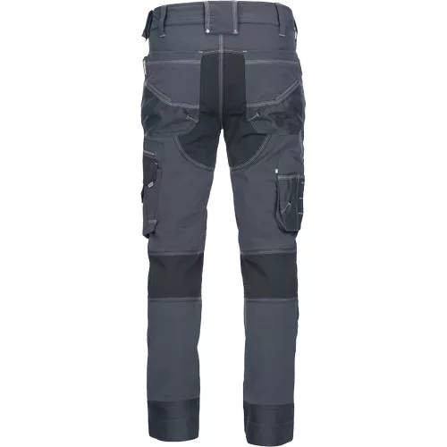• férfi munkanadrág rugalmas TRIFIBETEX anyagból, a legnagyobb igénybevételnek kitett részeken tartós CORDURA® szöveterősítéssel • megerősített térdrészek, oldalról behelyezhető térdvédőkkel • rugalmas derékrész • 2 oldalzseb • 2 hátsó zseb • bal combon multifunkciós zseb • színben harmonizáló fényvisszaverő elemek • hosszabbítható nadrágszárhossz