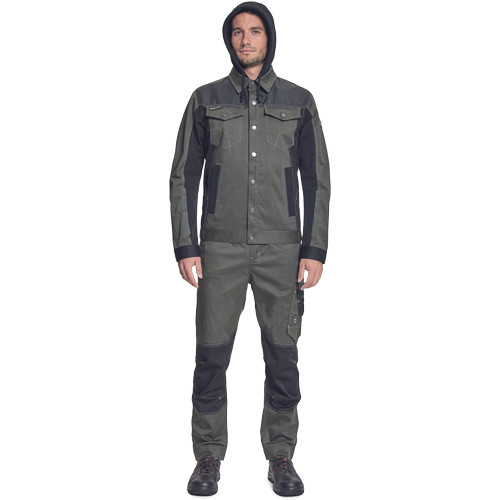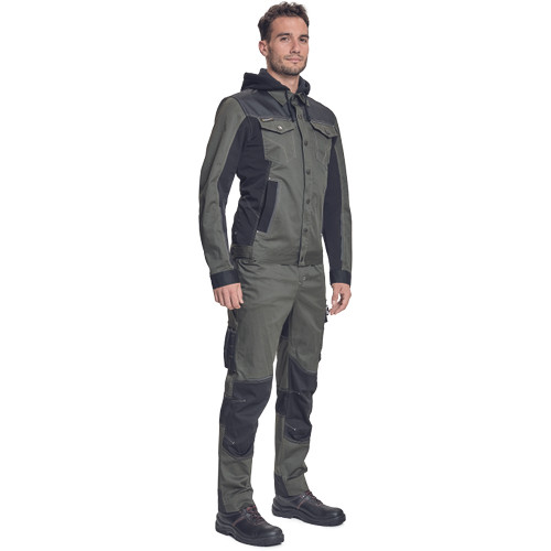 • munkakabát innovatív, pamutgazdag, rugalmas TRIFIBETEX® és TRIFIBETEXPRO® anyagokból CORDURA® betétekkel • levehető kapucnival • fém gombok • állítható mandzsetták • 2 oldalzseb • 2 gombos mellzseb • fényvisszavető csíkok