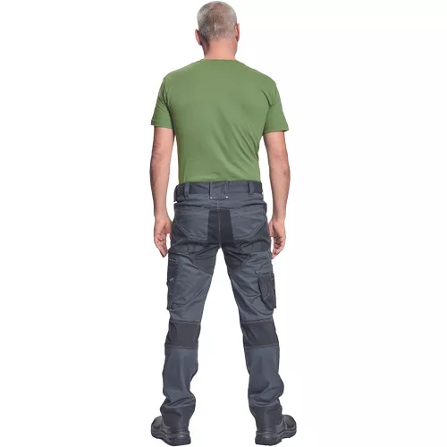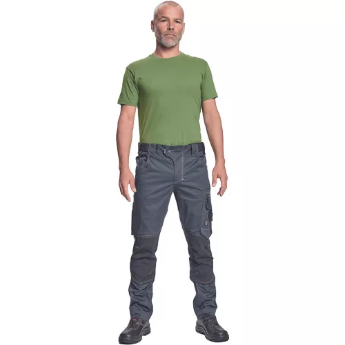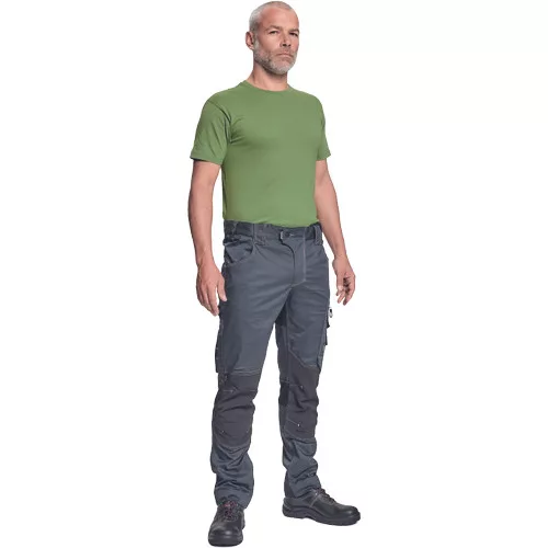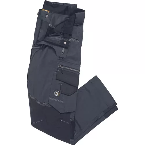 • férfi munkanadrág innovatív rugalmas Trifibetex® anyagból CORDURA® betétekkel • elöl 2 ékzseb • hátul 2 tépőzáras foltzseb • bal oldalon nagy multifunkciós zseb • jobb oldalon multifunkciós zseb vonalzónak • kés- és ceruzatartó • fém "D" gyűrű • rugalmas derék