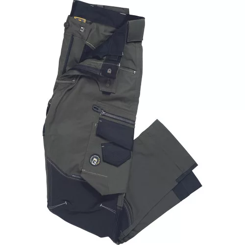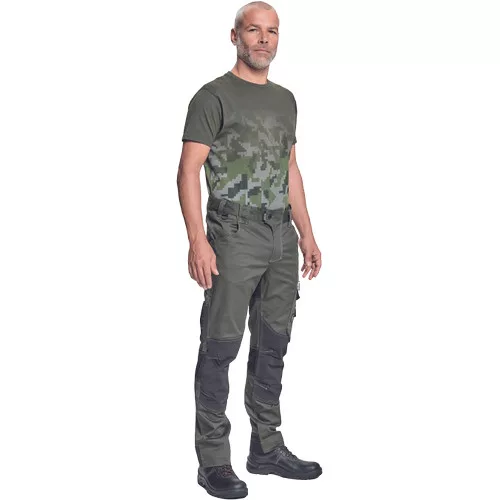 • férfi munkanadrág innovatív rugalmas Trifibetex® anyagból CORDURA® betétekkel • elöl 2 ékzseb • hátul 2 tépőzáras foltzseb • bal oldalon nagy multifunkciós zseb • jobb oldalon multifunkciós zseb vonalzónak • kés- és ceruzatartó • fém "D" gyűrű • rugalmas derék