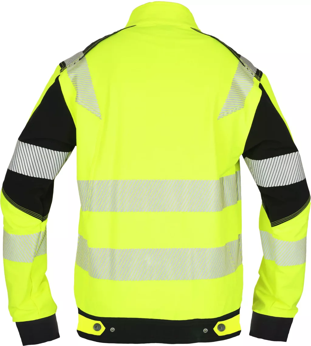 • férfi HI-VIS kabát állógallérral és cipzárral • rugalmas, innovatív TRIFIBETEX VIS® anyag • 2 oldalzseb • 2 cipzáras mellzseb • szegmentált, nyomtatott 7 cm széles fényvisszavető csíkok a törzsön, ujjakon és a vállrészen • patenttal állítható mandzsetta