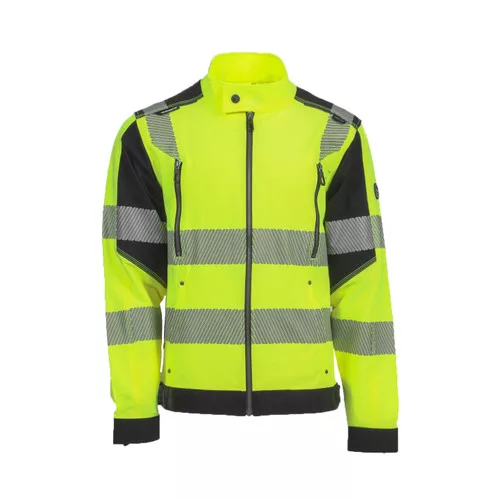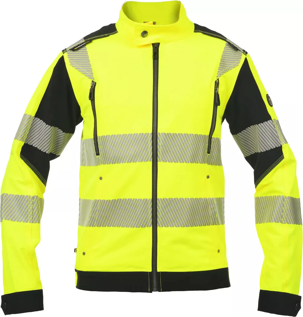 • férfi HI-VIS kabát állógallérral és cipzárral • rugalmas, innovatív TRIFIBETEX VIS® anyag • 2 oldalzseb • 2 cipzáras mellzseb • szegmentált, nyomtatott 7 cm széles fényvisszavető csíkok a törzsön, ujjakon és a vállrészen • patenttal állítható mandzsetta