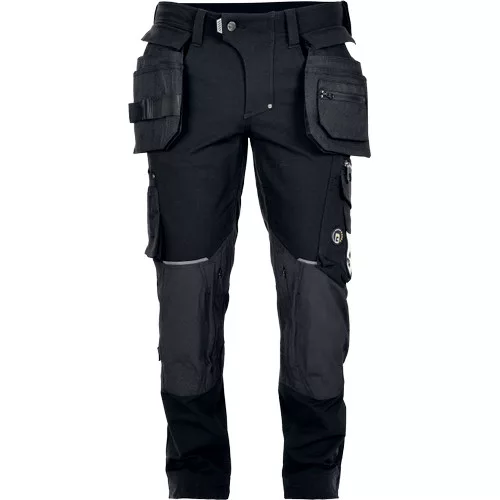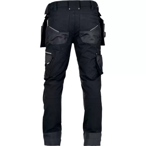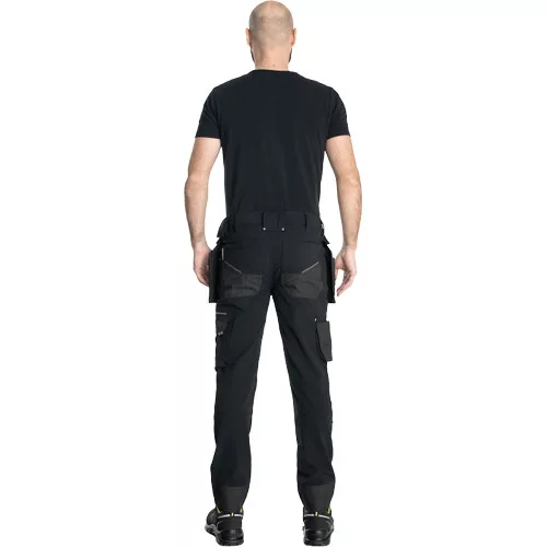 • férfi munkanadrág egyedi négyirányú stretch anyagból, Trifibetex-PRO® alapanyagból, melyet 2 eltávolítható, multifunkcionális lengőzseb egészít ki • 2 elülső ékzseb • 2 hátsó felvarrt zseb tépőzárral• bal combon nagy multifunkcionális zseb • multifunkcionális vonalzó- és kés tároló zsebek a jobb combon • CORDURA® megerősítés a térdrészen, opcionális térdvédő behelyezési lehetőséggel • tartós hármas varrás a szárakon és az üleprészen• rugalmas derék • állítható lábhossz • színben harmonizáló fényvisszavető részletek.