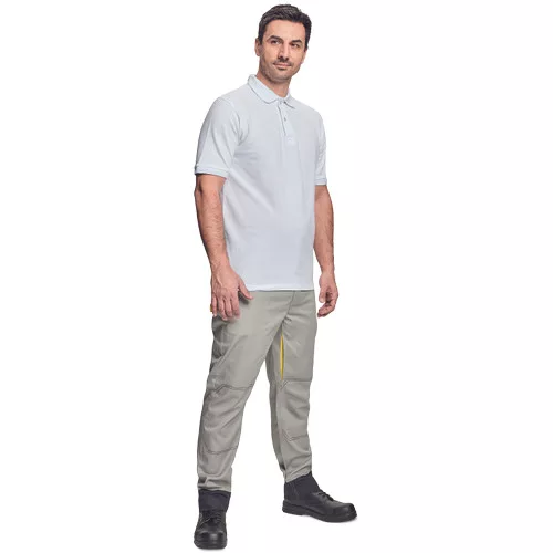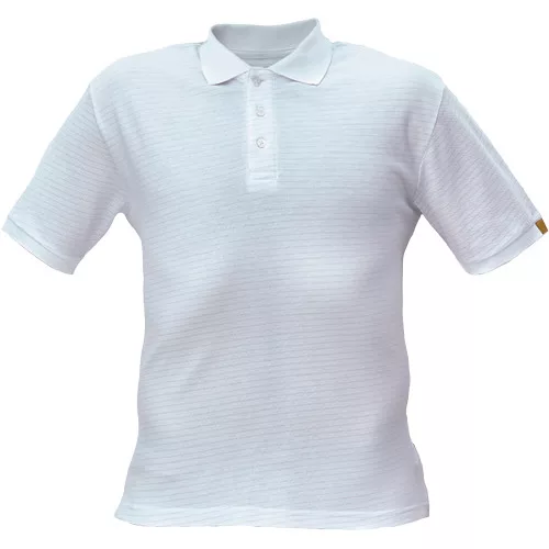 • rövid ujjú galléros pamut póló, antisztatikus szálakkal • univerzális minta • műanyag gombolású nyakkal