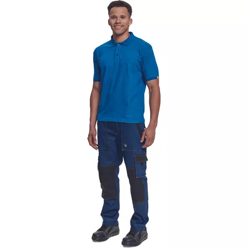 • rövid ujjú galléros pamut póló, antisztatikus szálakkal • univerzális minta • műanyag gombolású nyakkal