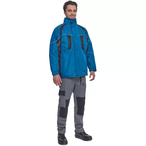 • bélelt, vízálló kabát gallérba hajtott kapucnival • külső szövet kopásállóságot növelő kezeléssel • húzózsinórral szűkíthető alsó szegély • fényvisszavető részletek