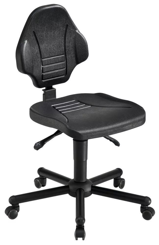 Nagy teherbírású szék, akár 250 kg-os terheléssel, pu hab, görgőkkel, ülőfelület 450 x 450 mm, ülésmagasság-állítás 470 - 610 mm, fekete