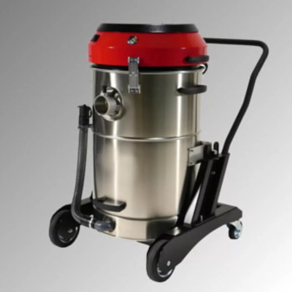 Nagy teljesítményű nedves és száraz porszívó, 120 literes rozsdamentes acél tartállyal, 3x1200 wattos/230 v-os motorral, 3,5 m-es szívótömlővel. 50 mm átmérő + univerzális ferde csőfúvóka
