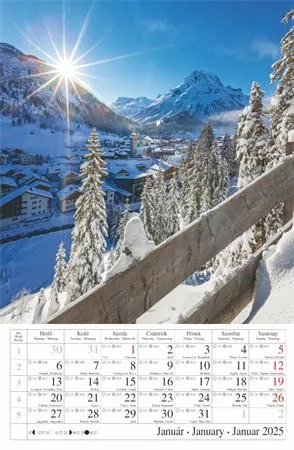 -naptár rész: magyar, angol, német nyelven, magyar  ünnepek  és névnapokkal, napkelte, napnyugta és holdállás  feltüntetésével